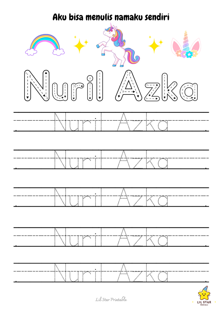 Seiring kemajuan si kecil menguasai worksheet trace my name, mereka akan semakin percaya diri akan kemampuannya menulis nama sendiri secara mandiri. Kepercayaan diri yang baru ditemukan ini akan memudahkan dalam proses pembelajaran lainnya.